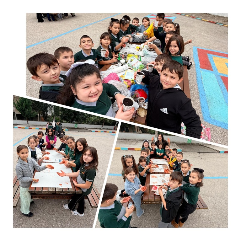 Öğrencilerimiz okul bahçesinde bir araya gelerek doğaya umut ekti. İstasyon tekniğiyle hazırladıkları tohum topları ve kilden şekillerle hem el becerilerini geliştirdiler hem de doğa sevgilerini pekiştirdiler.